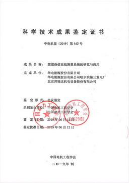 2019年6月12日,中國(guó)電機(jī)工程學(xué)會(huì)與中國(guó)動(dòng)力工程學(xué)會(huì)聯(lián)合召開(kāi)了該產(chǎn)品的項(xiàng)目鑒定會(huì),鑒定委員會(huì)認(rèn)為:項(xiàng)目研發(fā)的新型燃煤熱值在線測(cè)量系統(tǒng),具備成本低、安全性高、運(yùn)行可靠的特點(diǎn),解決了火電廠燃煤熱值在線檢測(cè)的難題,為火電廠鍋爐燃燒控制和精細(xì)化管理提供了技術(shù)支撐,具有顯著的經(jīng)濟(jì)、社會(huì)效益和推廣應(yīng)用前景,居國(guó)際先進(jìn)水平。